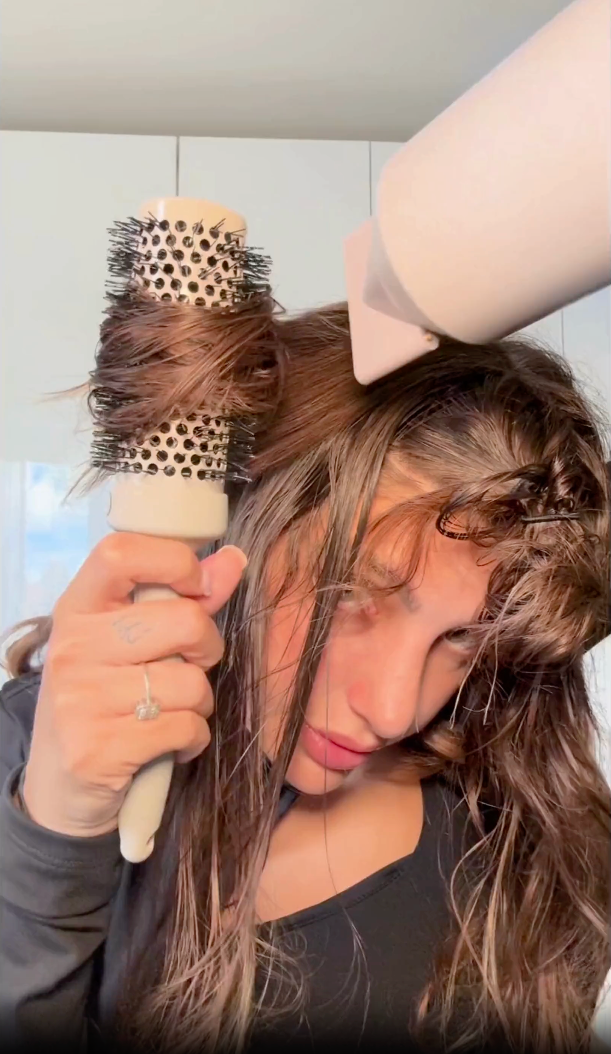 Blow dry in sections from roots to ends, with the airflow directed downwards.